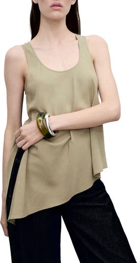 A swingy asymmetric-hem tank is made from a lightweight linen-kissed fabric and cut in a relaxed fit that's perfect for sunny days.