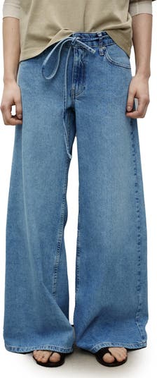 Cut from perfectly faded nonstretch denim, these wide-legged jeans switch up the look with a skinny string tie defining the waist.