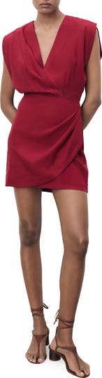 Slight sleeves frame this soft linen-kissed dress made with a crossover bodice and a wrapped skirt.