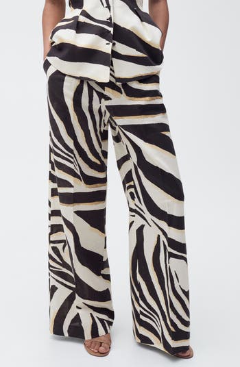 High-waist trousers are patterned by fierce zebra stripes and cut from a breathable linen and cotton blend that provides all-day comfort.