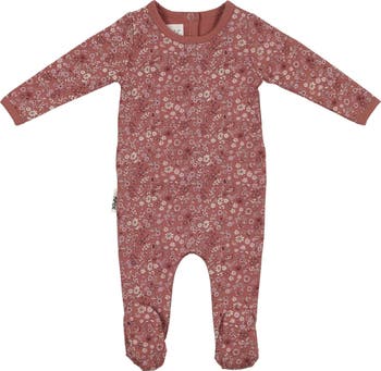 An allover floral pattern enriches a cozy footie made just for baby from a breathable cotton blend.