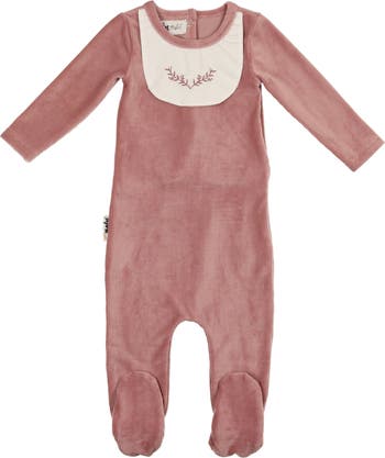 Delicate embroidery enriches the bib on this soft footie they'll love to snuggle up in.