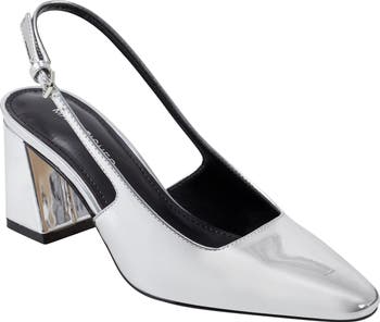 Easily go from day-to-night looks with this glossy faux-patent-leather pump lofted by a sturdy block heel and secured with a slingback strap.