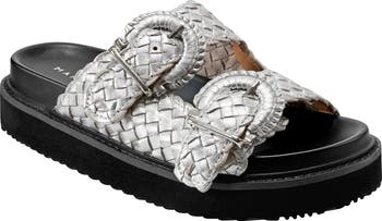 Woven straps bring distinctive texture to a sandal that perfectly balances casual and luxe style.