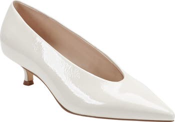 A high-cut topline and pointy toe bring stunning dimension to a streamlined leather pump set on a tapered kitten heel for a stylish hint of height.