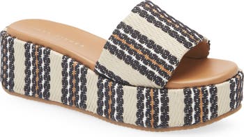 Crisp stripes bring eye-catching character to this retro-chic sandal set on a platform sole.