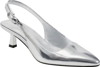 Make a refined style statement in this kitten-heel pump featuring a pointy toe and graceful slingback strap.
