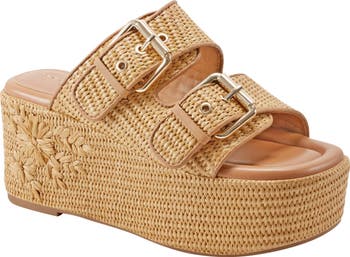 Woven composition grounds this two-strap platform sandal in boho-chic style that makes for a weekend-ready standout.
