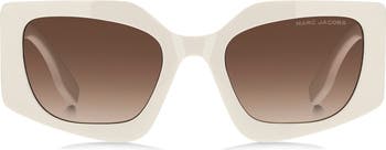 Rectangular frames an angular shape modernize these full-coverage sunglasses fitted with gradient lenses and accented with gleaming logos at the temples.