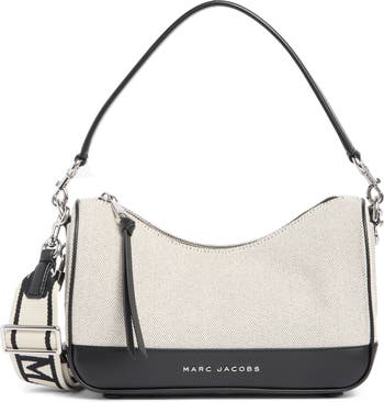 Gleaming hardware gives a luxe finish to a well-organized, canvas and coated-leather bag outfitted with a pair of interchangeable straps for versatility.
