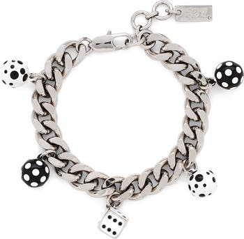Shake up your stack with this chunky curb-chain bracelet detailed with playful black-and-white charms.