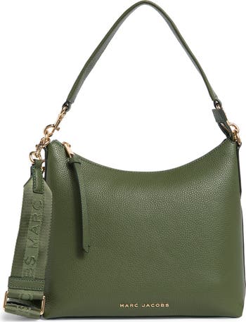 A curved silhouette defines a spacious shoulder bag rendered in rich pebble-grained leather and outfitted with a pair of interchangeable straps for versatility.