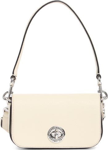 Pebbled leather construction enhances the chic appeal of this flap shoulder bag that's finished with monogrammed hardware and a convertible crossbody strap.