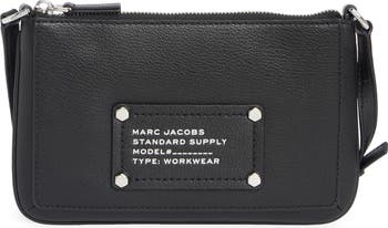 A workwear-inspired patch adds an elevated aesthetic to a slim crossbody featuring an adjustable strap for on-the-go convenience.