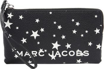 A high-contrast logo brings Marc Jacobs' signature touch to a slim pouch crafted from grained leather and set on a wristlet strap.