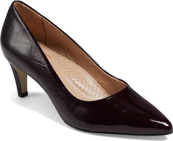 A curved silhouette puts a striking spin on a timeless pointy-toe pump rendered in supple leather.