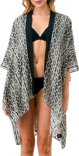 Vivacious abstract printing punctuates across a lightweight, duster featuring dramatic wide sleeves for an ultrachic, layered look.