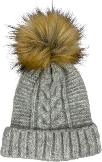 A fluffy faux fur pom brings a toasty touch to this cable knit beanie that'll keep you cute and cozy in the cold.