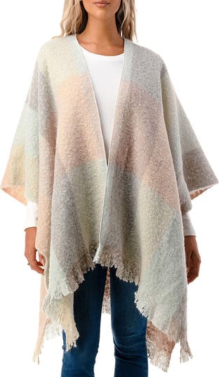 Classic plaid hints at the timeless look and feel of this cozy ruana that's finished with fringe to complete this cold-weather essential.