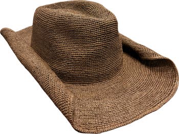 Shade your face from the sun's beams at your next rodeo with this raffia cowboy hat finished with a curved brim.