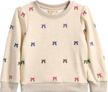 Tiny embroidered bows sweeten this ultrasoft sweatshirt that'll keep your kiddo warm on cold-weather days.
