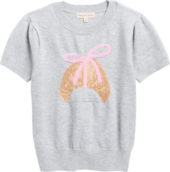 A croissant-jacquard design amplifies the preppy charm of this short-sleeve sweater sized for your fashionista.