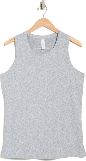 Head to the gym or studio in this sporty space-dyed tank cut from stretchy performance fabric and framed by side vents for maximum comfort.