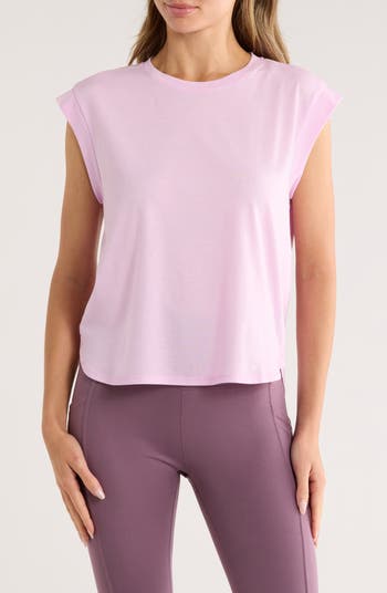 A curved high-low hem gives plenty of movement and room to your gym-day fit in this tank cut from a comfy cotton blend.