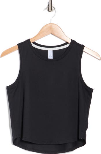 Get moving in this lightweight active tank cut in a cropped silhouette and framed by a curved high-low hem.