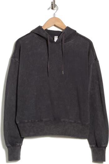 A faded wash enhances the old-favorite appeal of this comfortably oversized hoodie cut from soft cotton-blend fleece.