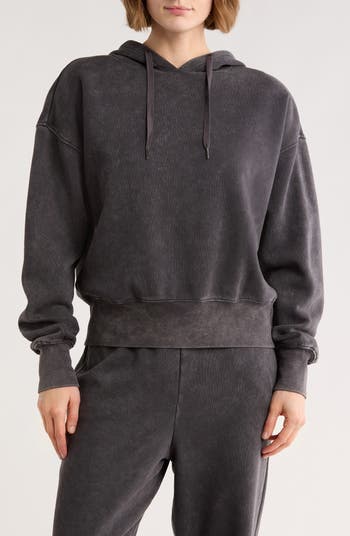A faded wash enhances the old-favorite appeal of this comfortably oversized hoodie cut from soft cotton-blend fleece.
