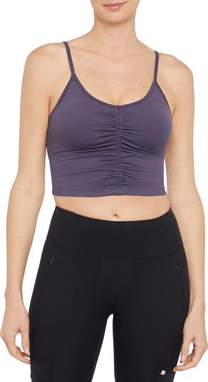 An underwire-free design keeps comfort at top of mind with this longline bralette shaped with a dramatically ruched center seam.
