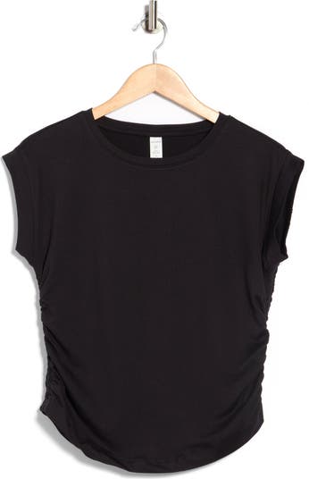 Ruched sides cling to your curves in this crewneck tank made from soft and stretchy fabric for everyday comfort.
