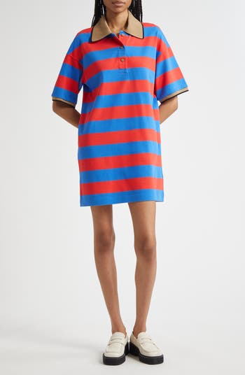 Chunky stripes and contrast trim give a retro look to this cotton polo tunic.