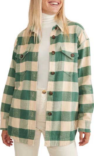 Soft cotton flannel punches up with perky checks in a shirt-jacket sure to become a favorite layer on brisk days.