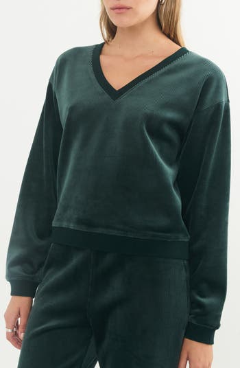 Level up your laid-back look with an easygoing top crafted in plush corded velour.