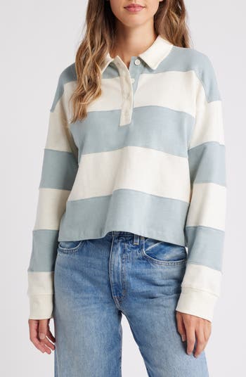 The beloved rugby shirt plays a shorter game in this cropped option crafted in pure cotton and rendered in sun-faded shades.