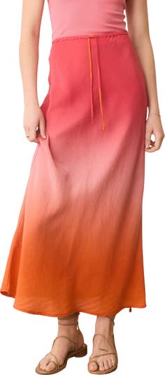 A dreamy ombré design covers this sustainably made maxi skirt topped with an easy drawstring waist for a piece that not only makes you look good, but feel good too.