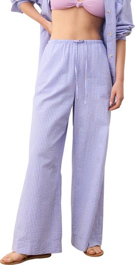 Laid-back and relaxed, these wide-leg pants are made from striped seersucker with a supersoft, naturally crinkled texture.
