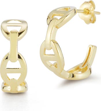 These small mariner-chain hoop earrings are made from sterling silver and finished in radiant 14-karat gold for a modern twist on a classic nautical design.