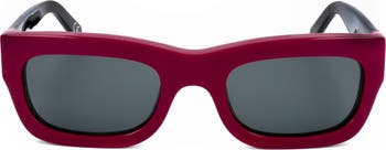 Smooth rectangular frames define these sleek sunglasses fitted with smoky-tinted lenses.