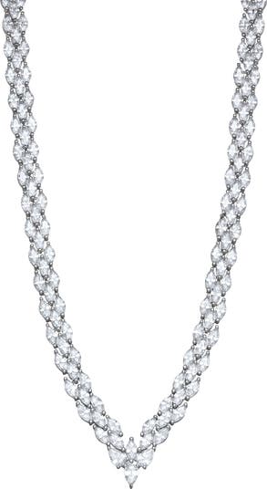 Sparkly marquise- and pear-cut cubic zirconia enrich this glamorous tennis-inspired necklace boasting a high-shine finish.