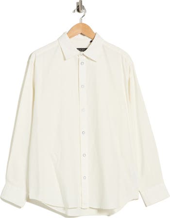 Breathable linen-based blend elevates a handsome button-front shirt in a versatile solid hue and tailored with a rounded-hem and a regular fit.