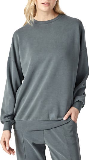 Lounge around while looking effortlessly cool in this oversized sweatshirt cut from a subtly lustrous fabric with a supersoft hand feel.