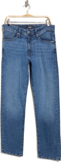 Tried-and-true straight-leg jeans are made from soft stretch denim in a faded medium wash perfect for everyday wear.