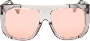 Show off sporty style in these transparent shield sunglasses boasting integrated nose pads and mirrored lenses.