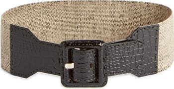 Glossy, croc-embossed leather refines a wide elasticized belt that stretches to cinch your waist perfectly.