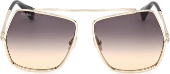 A distinctive geometric silhouette elevates eye-catching sunglasses fashioned with adjustable nose pads and signature branding at the temples.