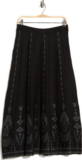 Crisp pleats polish the soft sweater-knit body of this A-line midi skirt.