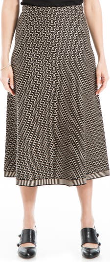 A geometric pattern elevates the chic look of this a-line skirt knit from supersoft sweater yarn.